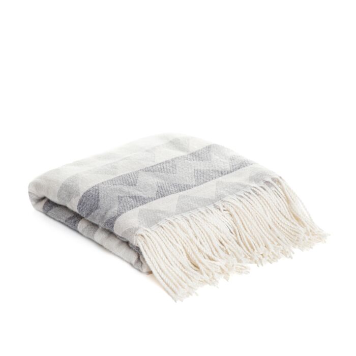 Het subtiele zigzagpatroon en de opvallende kwastjes geven de deken een stijlvolle uitstraling. Hij is licht van gewicht en biedt tegelijkertijd optimale warmte, perfect voor ontspannende momenten op de bank of het terras.