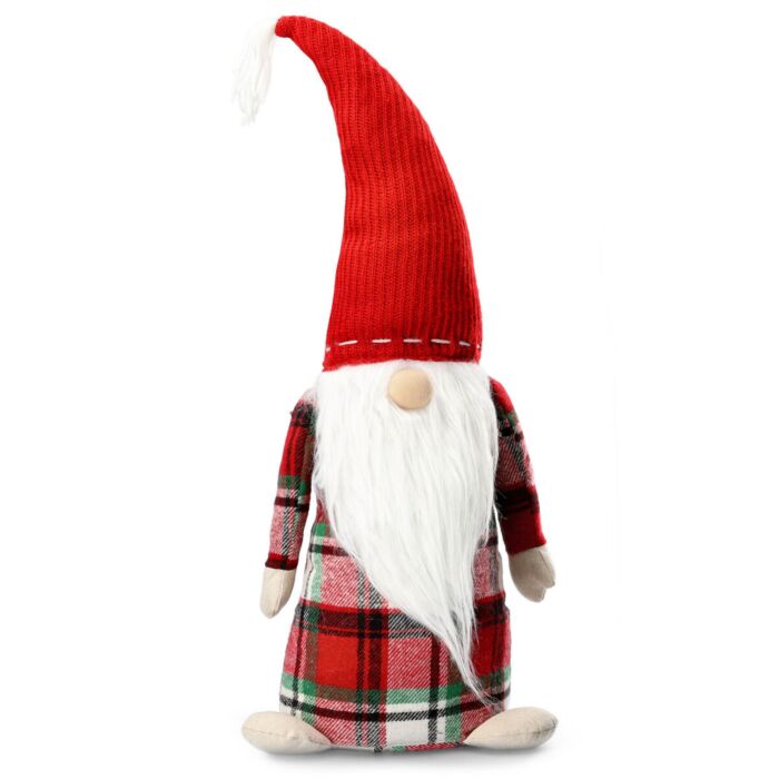 Kerstman ELIAS is een charmante kerstdecoratie van 59 cm. Hij draagt een kenmerkende kerstmuts die net over zijn ogen valt en heeft een zacht, donzig aanvoelende baard. Zijn geruite wambuis in traditionele kerstkleuren maakt het geheel compleet.