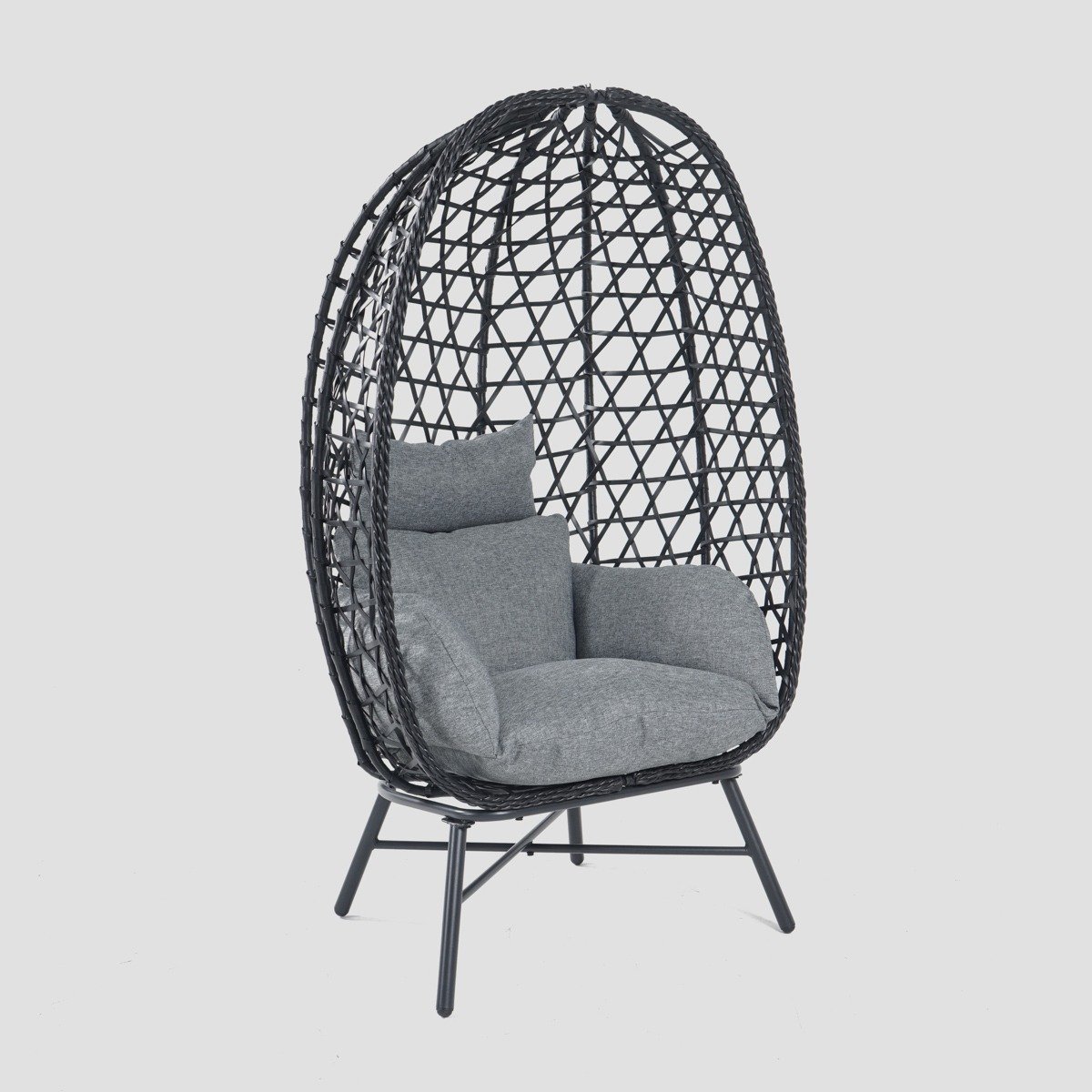 The PARAISO garden armchair is voor diegenen die hun eigen privérecreatiegebied willen creëren - stijlvol, comfortabel en vol gezelligheid. Het open ontwerp in zwart past prachtig bij de zachte grijze kussens en creëert een harmonieuze geheel. Het is de perfecte optie om te ontspannen met een boek, koffie of voor een middagdutje.