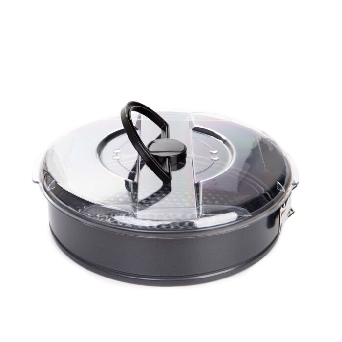 De FEBE bakvorm is ontworpen met aandacht voor gebruiksgemak. De afneembare bodem maakt het eenvoudig om de gebakken cake of taart uit de vorm te halen zonder deze te beschadigen. Het transparante deksel met handvat vereenvoudigt zowel het transport van uw baksels als het bewaren in de koelkast, zodat uw lekkernijen vers blijven.
