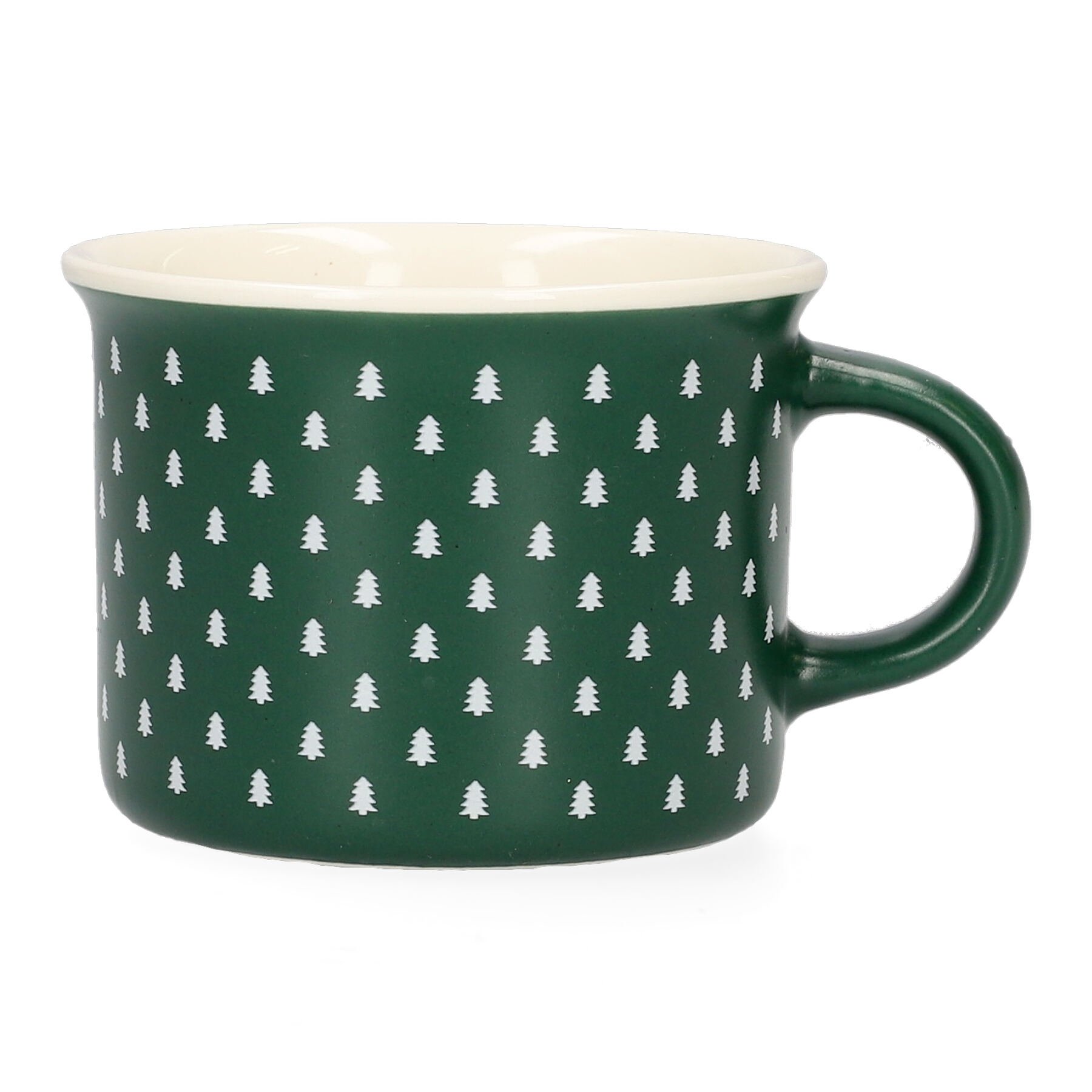 Met een retrostijl en een klassieke vorm zijn de HOMLA Flocon kerstmokken perfect voor het serveren van warme dranken tijdens de feestdagen. De groene kleur en de feestelijke print met kerstbomen voegen een vleugje kerstsfeer toe aan uw tafeldecoratie.