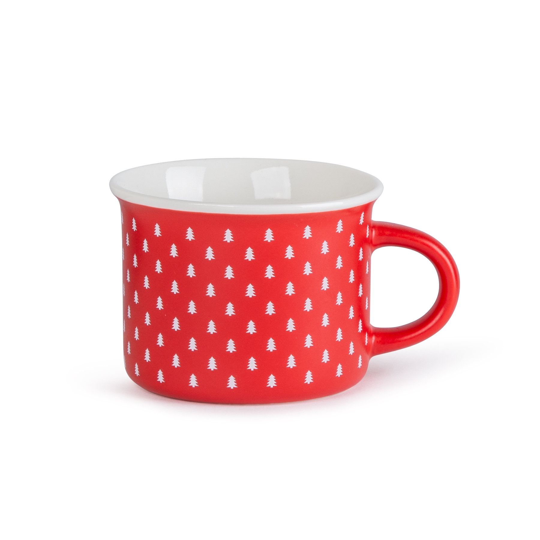 HOMLA | Kerstmok Flocon | Retrostijl en Klassieke Vorm - 0,16 l - Rood met Kerstbomen