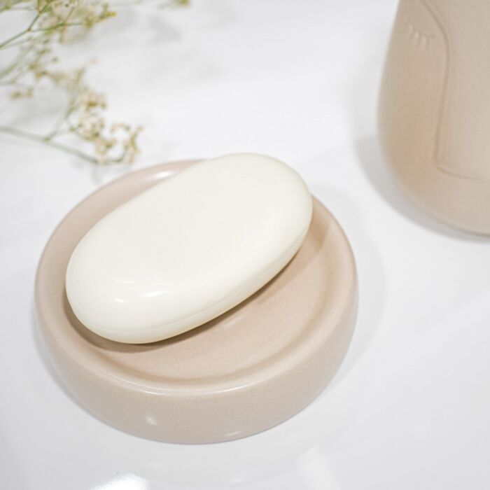 Het HOMLA zeepbakje brengt een Scandinavische sfeer en minimalisme in huis. Ideaal voor badkamers en keukens, dit zeepbakje combineert praktisch gebruik met rustieke esthetiek. Gemaakt van dolomietbeige, dit zeepbakje is ontworpen in een ergonomische cirkelvorm voor gemakkelijk gebruik.