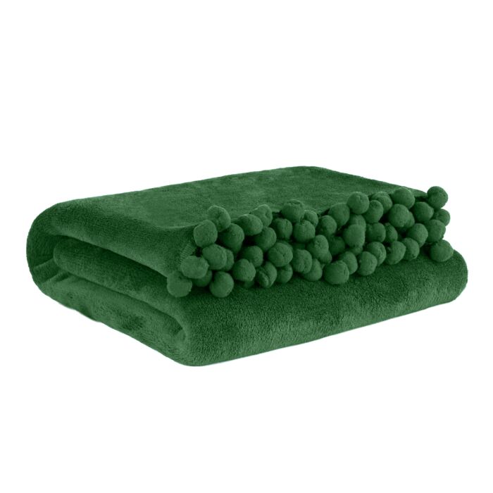 HOMLA HJO knuffeldeken met pom-poms, fluffy & soft – plaid/bedsprei voor bank en slaapbank, polyester, 150 x 200 cm, groen