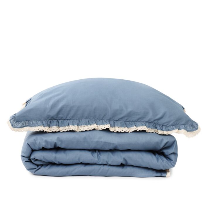 HOMLA MOISES - BEDDING - Beddengoed - Dekbedovertrek - Katoen Blauw met Kant - 160x200 cm