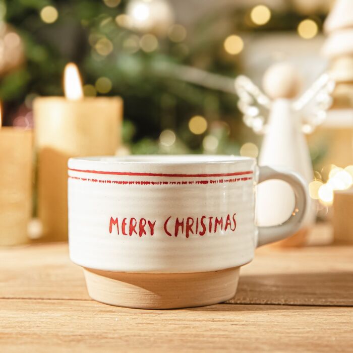HOMLA | Molly mok | Kerststijl | Hoogwaardig steengoed | Wit | 280 ml
