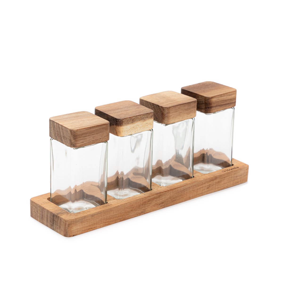 HOMLA - MOOKA - Kruidenschaaltjes Set - Acacia Houten Dienblad - 4x120 ml