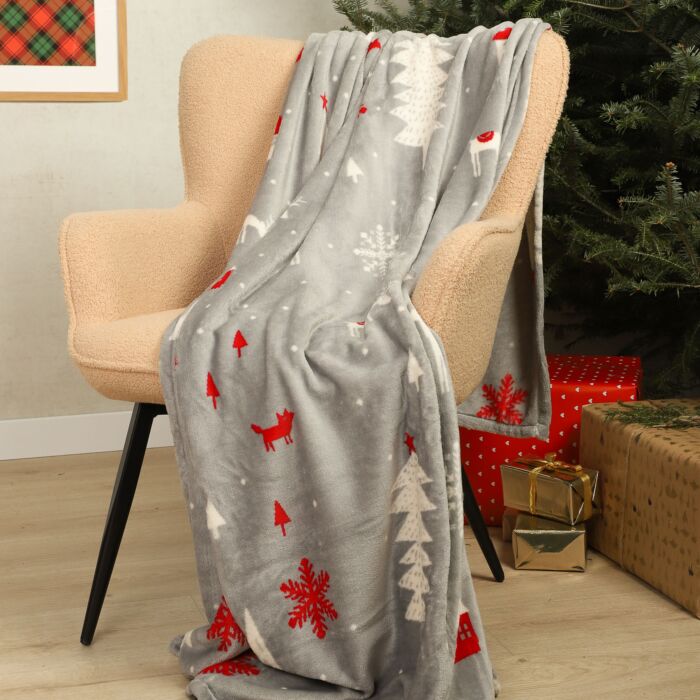 De HOMLA Paxe-deken is ontworpen voor ultiem comfort en knusheid. Het kerstmotief met vrolijk kerstboompatroon voegt een feestelijke touch toe aan elke ruimte.