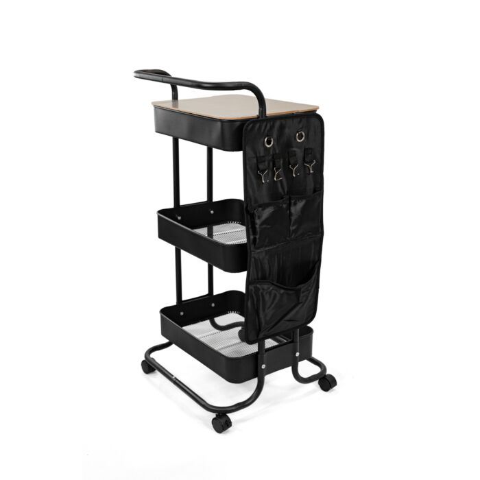 De verrijdbare boekenkast HOMLA HYLLA creëert extra opbergruimte in elke kamer. Dankzij de 4 wieltjes kun je de kast gemakkelijk verplaatsen zonder de planken te hoeven legen. Het transport wordt vergemakkelijkt door de handgreep aan de bovenkant, waarmee je de boekenkast eenvoudig kunt sturen tijdens het transport. De kast bestaat uit 3 planken en wordt geleverd met een organiser die aan speciale haken kan worden opgehangen. Het geheel is uitgevoerd in zwart, wat mooi wordt afgewisseld met een naturelkleurige houten plank.