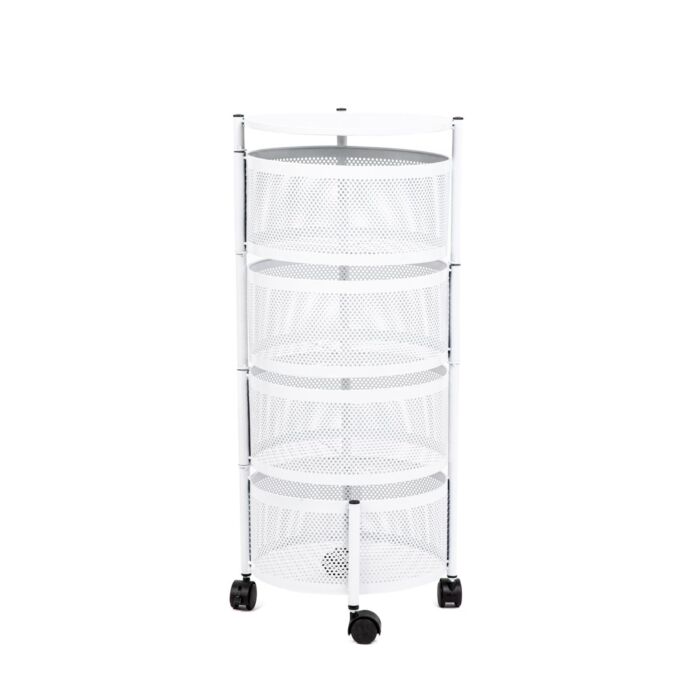 Dit rek heeft een handige maat van 34x34x75 cm, waardoor het ideaal is voor kleinere ruimtes. Gemaakt van stevig wit metaal, biedt het een betrouwbare constructie die zowel lichtgewicht als sterk is.