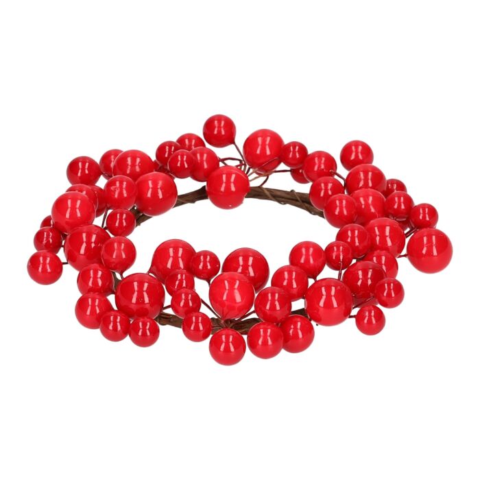 Kerstkransen brengen een gezellige sfeer in elk interieur tijdens de kerstperiode. Deze kunstkerstkrans van HOMLA is een prachtig ornament met rode kralen, perfect voor feestelijke tafeldecoratie of om op te hangen aan de deur of muur.
