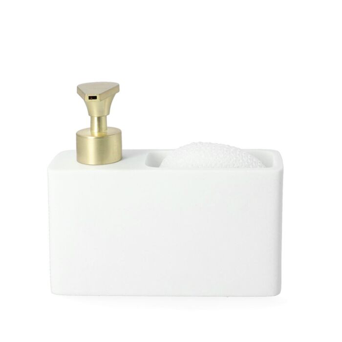 De dispenser is niet alleen perfect voor het verstrekken van handzeep of afwasmiddel, maar heeft ook een ingenieus ontwerp dat ruimte biedt voor een spons of andere accessoire. De luxe gouden pomp voegt een chique accent toe, waardoor het product niet alleen functioneel is, maar ook een statement maakt in uw ruimte.