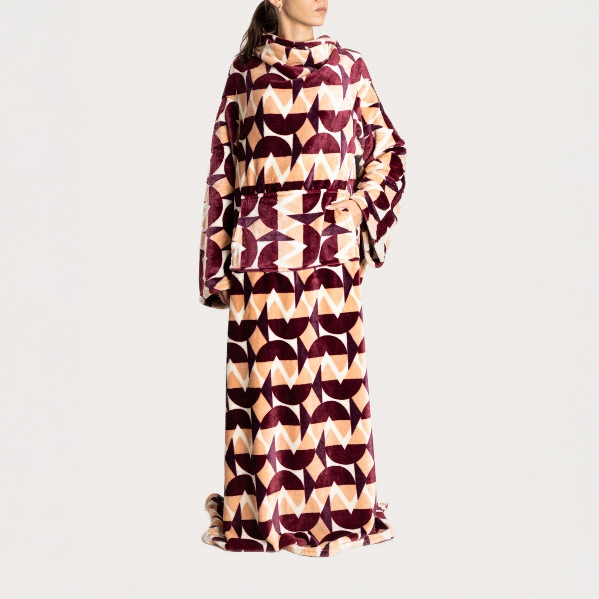 De CHERRY CHIC deken omarmt je met warmte op koudere dagen. Het is perfect voor avonden met een boek, film of je favoriete tv-serie. Dankzij de praktische mouwen kun je eenvoudig thee, snacks of de afstandsbediening pakken zonder jezelf te onthullen en je moment van ontspanning te onderbreken.