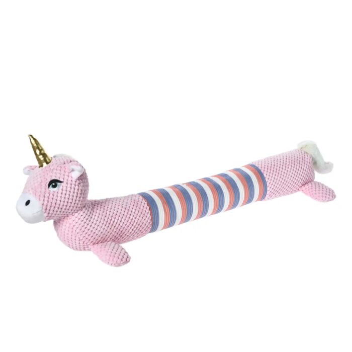 Deze hondenknuffel dient als een uitstekende speelkameraad voor jouw hond, en biedt tegelijkertijd een comfortabele plek om te knuffelen. Het unieke unicorn ontwerp maakt het een visueel aantrekkelijke toevoeging aan de hondenaccessoires.