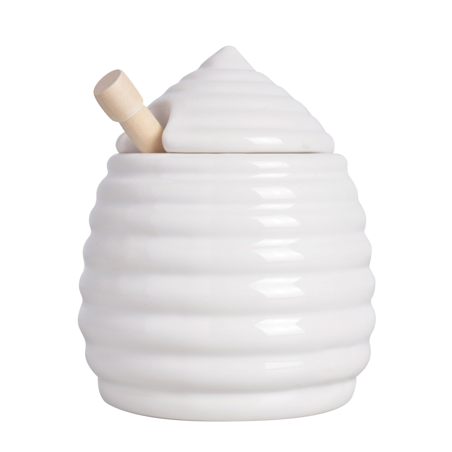 Deze honingpot is vervaardigd van hoogwaardig keramiek en voorzien van een luchtdichte deksel om de versheid te garanderen. De pot heeft een diameter van 10 cm en een hoogte van 12 cm. De bijgeleverde houten lepel is 15 cm lang.