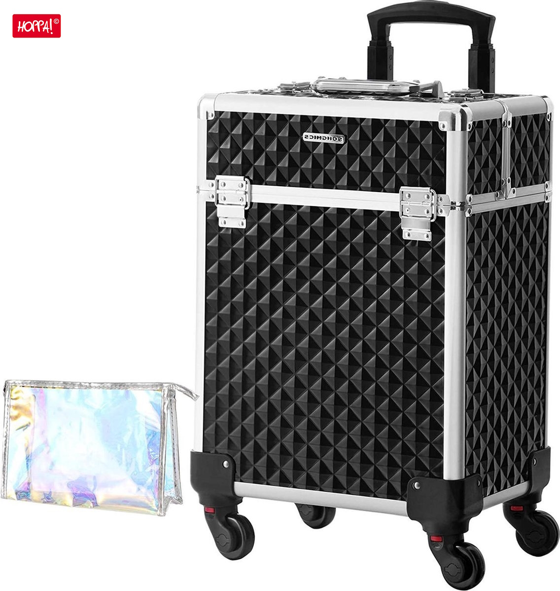 Hoppa! Cosmetische koffer, trolley, 4 uitschuifbare dienbladen, make-up tas, zwart