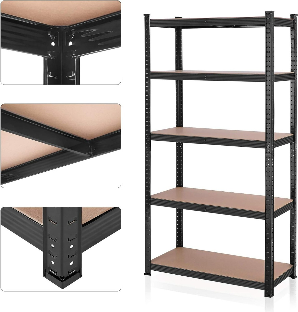 Met een belastbaarheid van tot wel 625 kg (125 kg per plank) is dit opbergrek ideaal voor het opbergen van zware items zoals gereedschappen, dozen, en containers. Het zwart gepoedercoate frame voegt een moderne uitstraling toe aan elke ruimte waarin het geplaatst wordt.