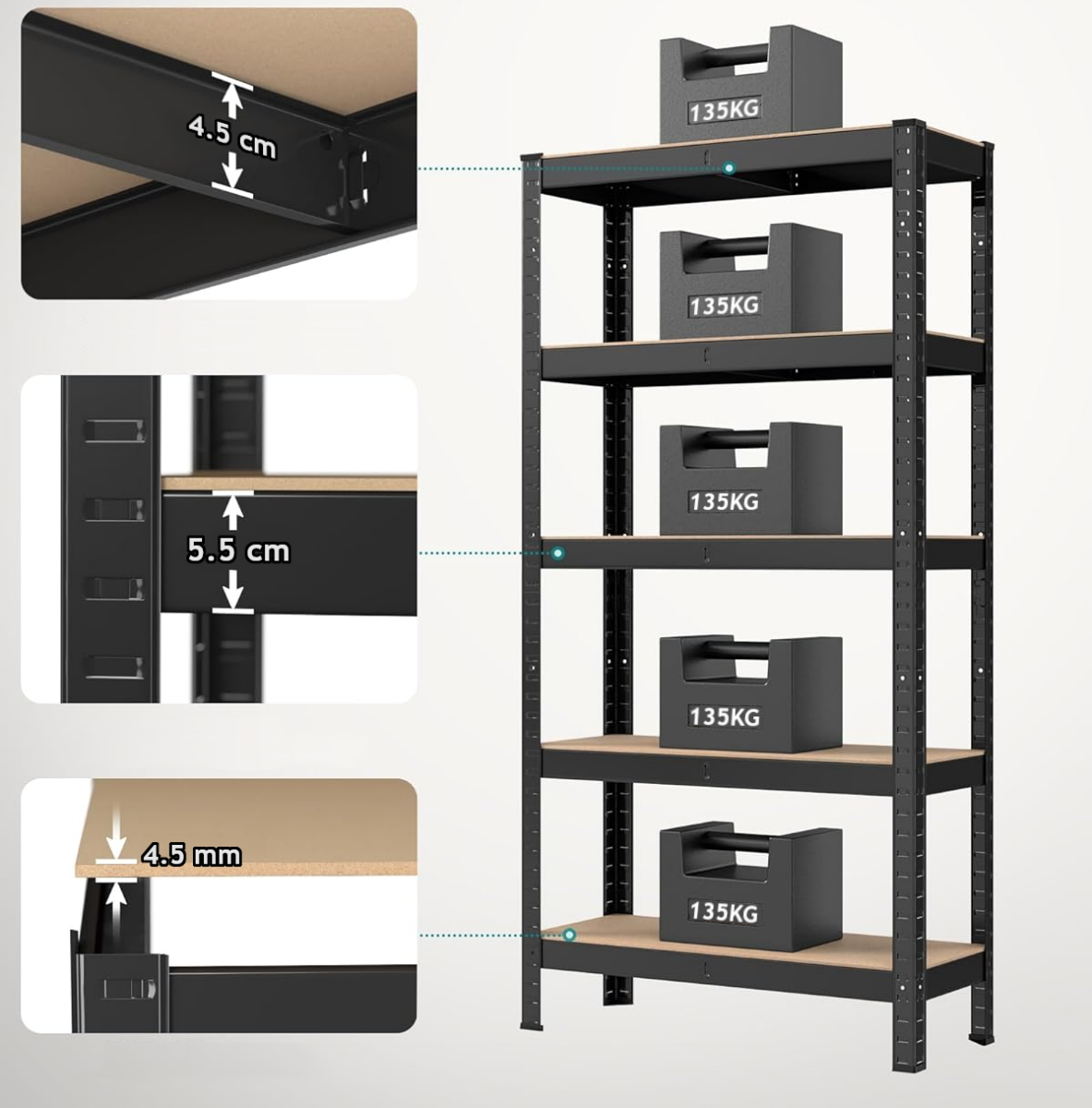 De Hoppa! Magazijnstelling - Opbergrek is een stevige oplossing voor al uw opslagbehoeften. Met een stalen frame en verstelbare planken die elke 3 cm kunnen worden aangepast, biedt dit opbergrek veelzijdigheid en stabiliteit. De magazijnstelling is deelbaar in 2 afzonderlijke eenheden, waardoor het ook als werkbank kan worden gebruikt. Met een indrukwekkende totale draagvermogen van 875 kg en een groot formaat van 76 x 30 x 151 cm is dit rek ideaal voor gebruik in garages, magazijnen, kelders of bijkeukens. Daarnaast zorgt de eenvoudige boutloze montage ervoor dat u snel en gemakkelijk van dit opbergrek kunt genieten, zonder gedoe met gereedschap.