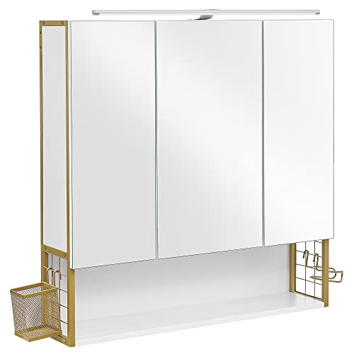 Wandkast met LED-verlichting | 3-deurs | Wit en goud