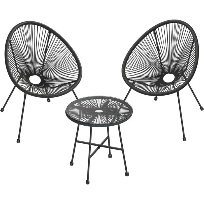 Het functionele ontwerp van de tuinset biedt comfort en stijl. Perfect voor ontspanning in de buitenlucht, de stoelen hebben een maximale statische belasting van 130 kg per stoel, terwijl het tafelblad geschikt is voor maximaal 60 kg.