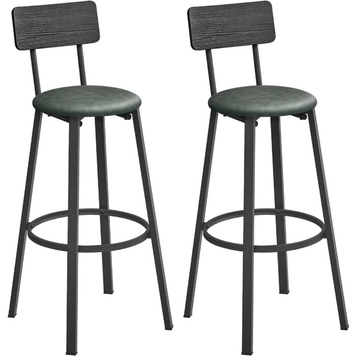Hoppa! Set van 2 barkrukken – PU-zitting met voetsteun, industrieel ontwerp in inktzwart en bosgroen