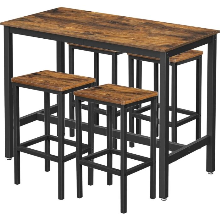Hoppa! | Bartafel- en Barkrukkenset | Bruin & Zwart | Tafel 120×60×90 cm, 4 Barkrukken 30×40×65 cm