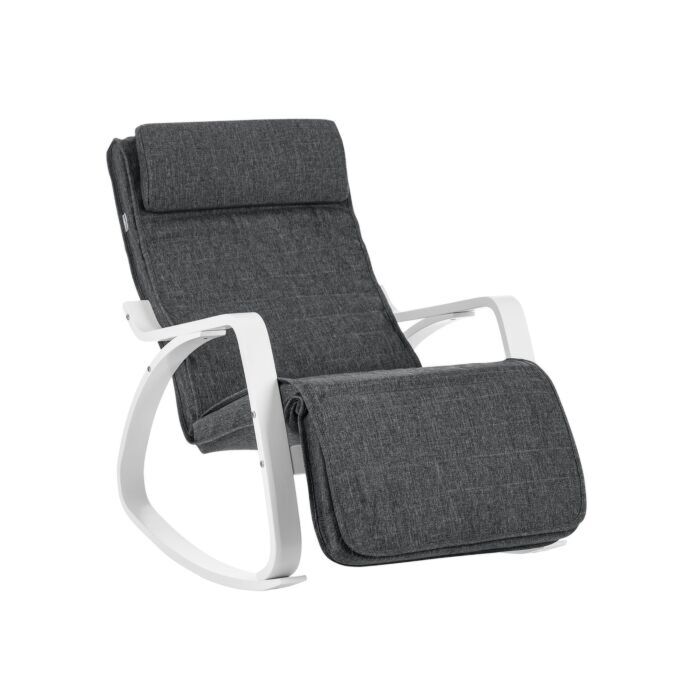 Berken Schommelstoel | Relax-Fauteuil | Verstelbare voetsteun | Belastbaar tot 150 kg | Donkergrijs