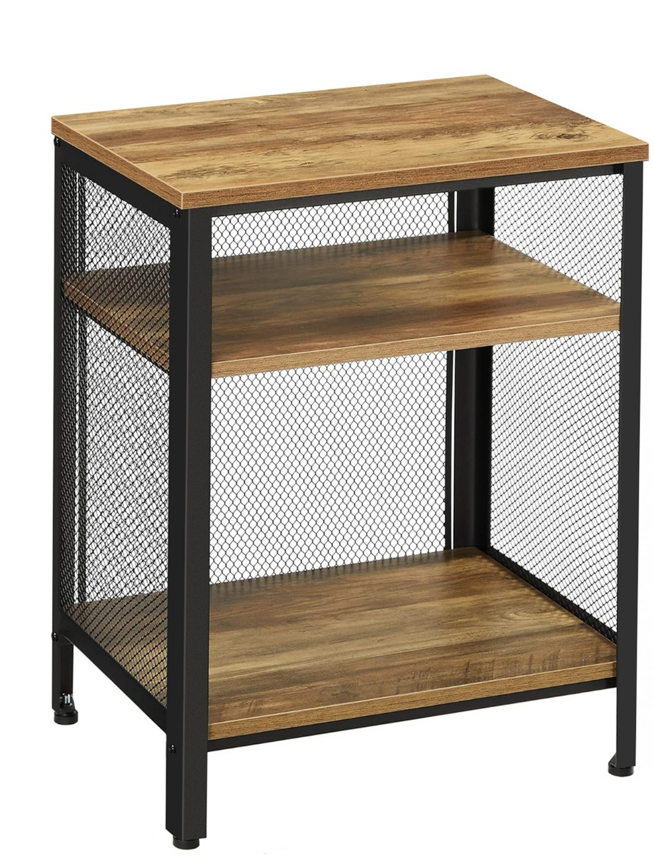 Hoppa! | Bijzettafel | Lichtbruin & Zwart | Mesh & Staal | 49 x 35 x 63 cm (B x D x H)