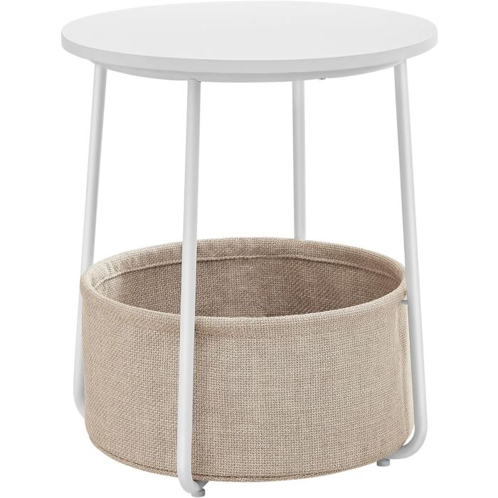 Hoppa! | Bijzettafel | Ronde bijzettafel met stoffen mand, ruim, moderne stijl, wit en beige LET223W10