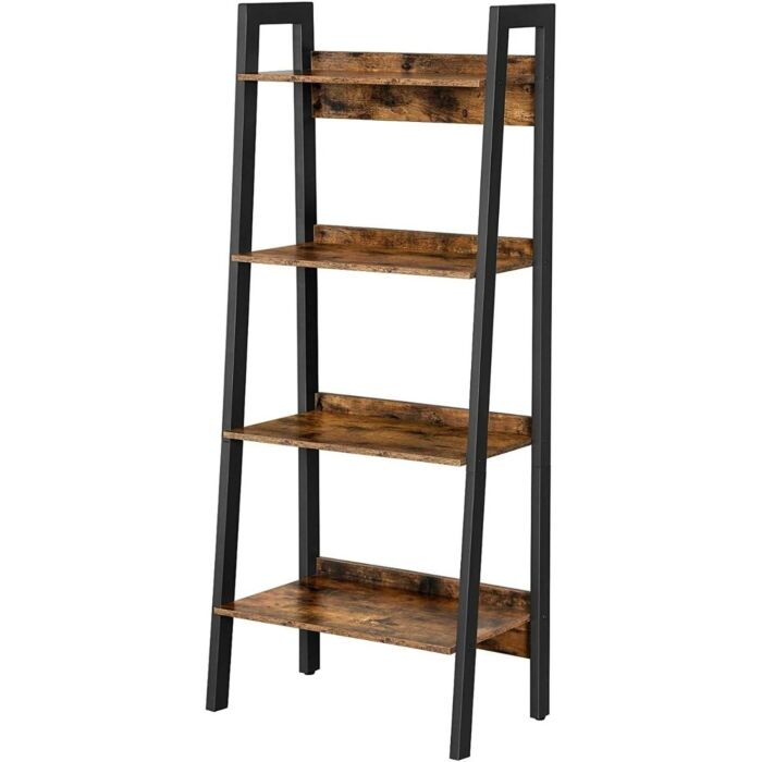 Hoppa! Boekenkast Industrieel | Bruin/Zwart | 4 Niveaus | Hout/Metaal | 56 x 34 x 137.5 cm (B x D x H)