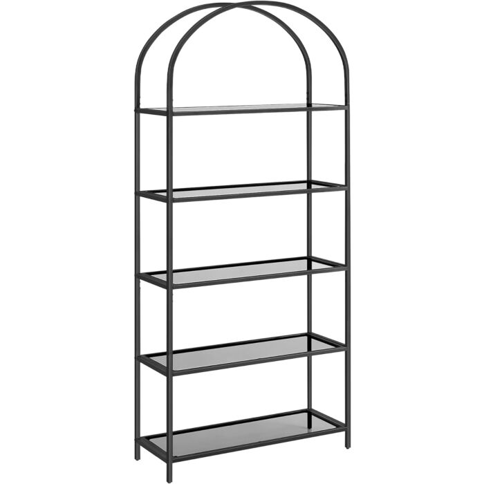 Hoppa! | Boekenkast | 5-laags opbergrek van gehard glas met gebogen bovenkant | Zwart en grijs