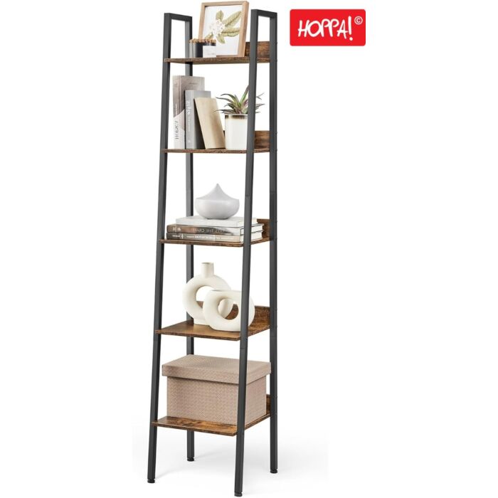 Hoppa! | Boekenkast | Ladderplank met 5 planken | Vintage Bruin-zwart