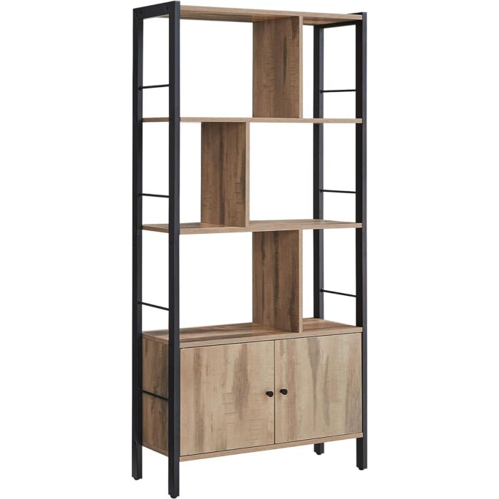 Hoppa! | Boekenplank, opbergplank, grote boekenkast met deuren | 4 planken | Stalen structuur | Industriële stijl | Geroosterd eikenkleur en zwart LBC022B50