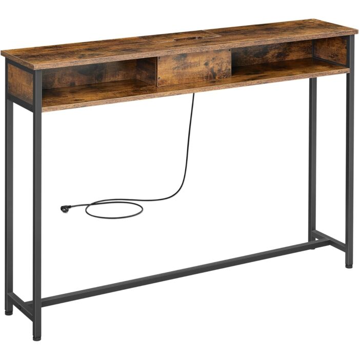 Hoppa! | Consoletafel met stopcontacten | Smal 25 x 120 x 81 cm | Vintage Bruin-Inktzwart