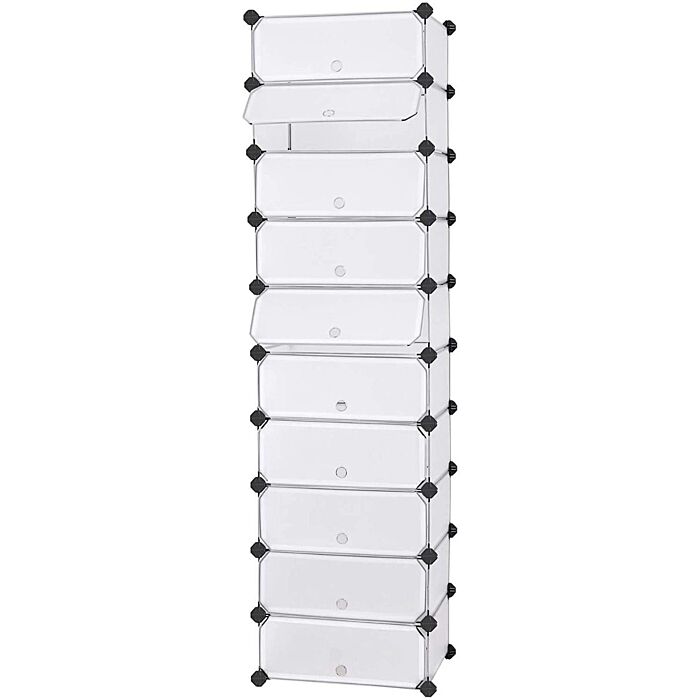 Hoppa! DIY-schoenenrek | 10 niveaus | halftransparant wit | kunststof | 48 x 36 x 173 cm (B x D x H)