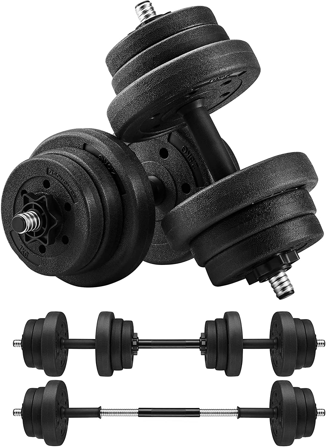 De Halterset bestaat uit 16 schijven van verschillende gewichten, waaronder vier schijven van 2,5 kg, vier schijven van 1,25 kg en vier schijven van 1 kg. De schijven zijn gemaakt van stevig gietijzer, waardoor ze duurzaam zijn en bestand tegen een hoge mate van slijtage. Het ontwerp laat u gemakkelijk het gewicht aan de dumbbells aanpassen tussen de 20 kg en 30 kg, wat ideaal is voor elke trainingssessie.