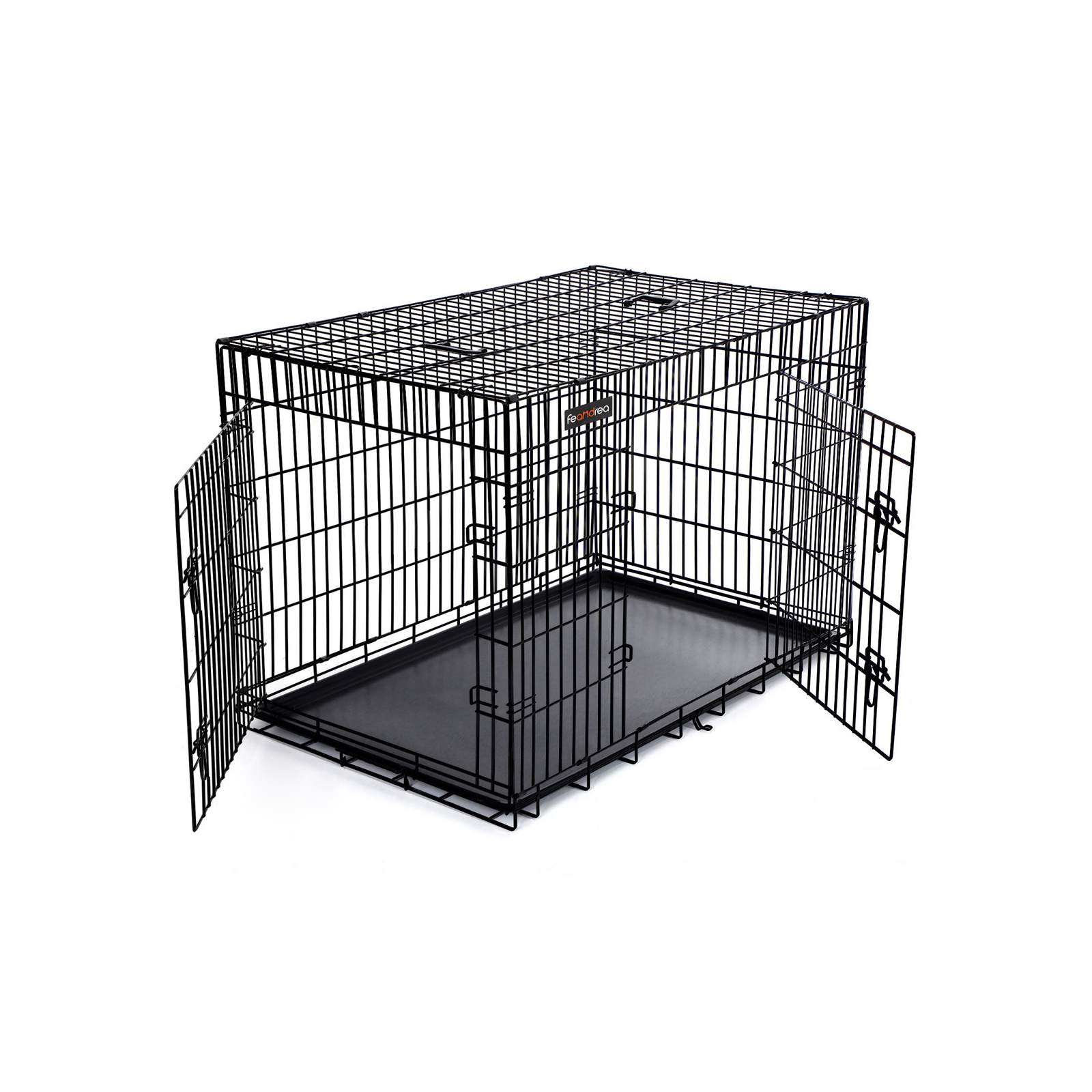 De hondenkooi heeft een afmeting van 122 x 74,5 x 80,5 cm en is gemaakt van robuust en duurzaam metaaldraad.
