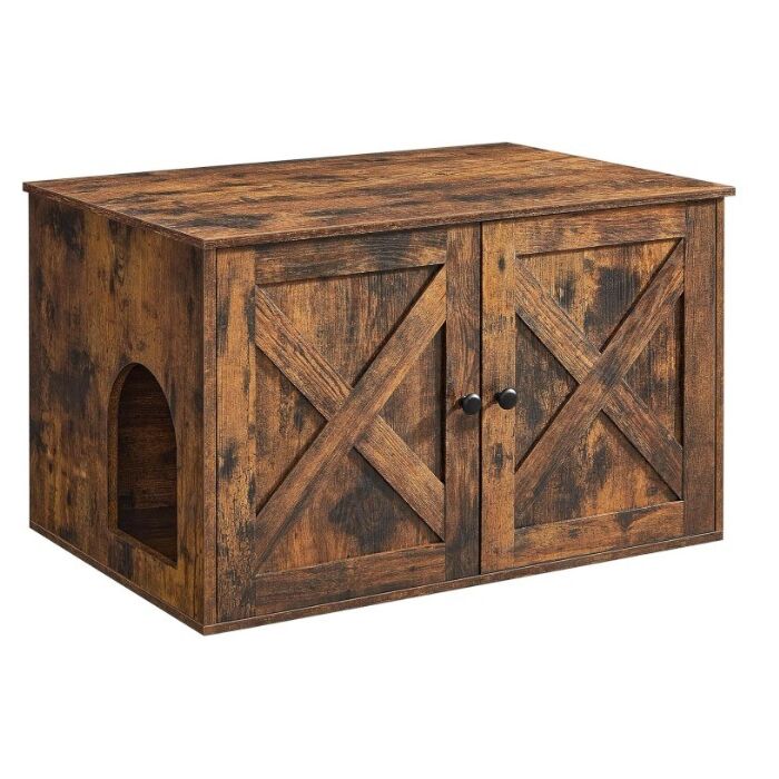 Hoppa! Kattenbak/kattenhuis met deuren, vintage bruin-zwart, 81 x 54 x 51 cm (B x D x H)