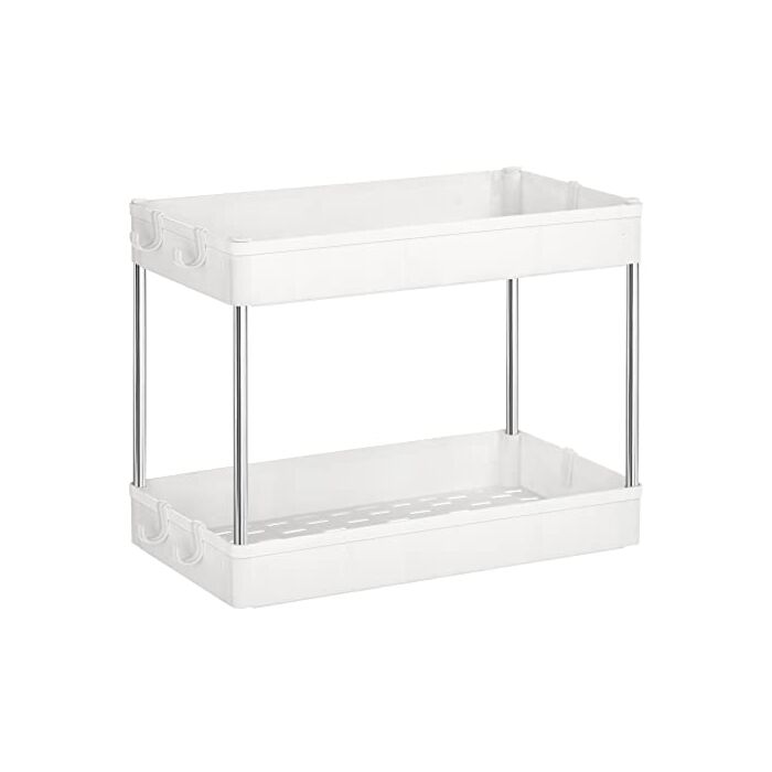 Vergroot uw ruimte onder de wastafel met de Hoppa! Keukenplank. Met afmetingen van 40 x 22 x 31 cm biedt deze plank 2 niveaus waardoor er voldoende ruimte is om schoonmaakproducten, shampoos en sprayflacons op een georganiseerde manier op te bergen.