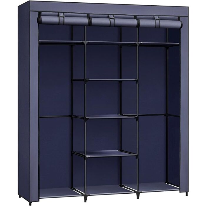 De stoffen bekleding is voorzien van een rits en klittenband, waardoor je kleding beschermd blijft tegen stof en vuil. Dankzij het eenvoudige montagesysteem met plastic verbindingsstukken kun je de kledingkast snel in elkaar zetten zonder gereedschap. Hang je shirts en jurken op de kledingroedes en gebruik de legplanken voor georganiseerde opslag van tassen en schoenen.