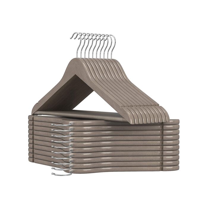 Deze houten kleerhangers zijn ideaal voor het ophangen van zware winterjassen, broeken, en andere kledingstukken. De antislip broekstang zorgt ervoor dat broeken stevig op hun plaats blijven.