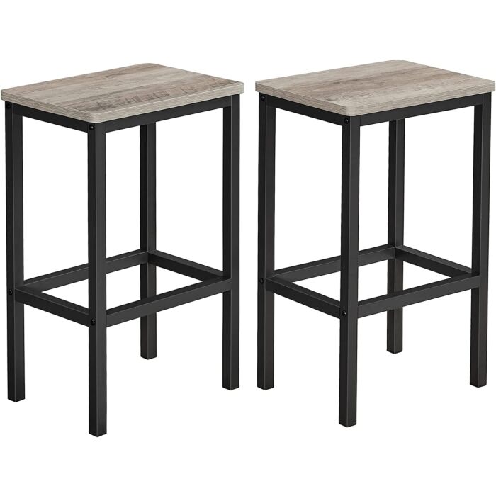 De krukken meten 30 x 40 x 65 cm en zijn vervaardigd uit duurzaam spaanplaat en robuust staal, met een draagkracht tot 120 kg per kruk voor langdurig gebruik.