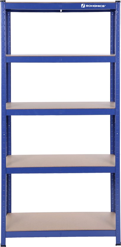 Elke plank van dit opbergrek kan tot 175 kg dragen, met een totaal belastbaarheid van 875 kg. Het ontwerp is praktisch en eenvoudig te monteren, waardoor het ideaal is voor het organiseren en opslaan van diverse items.