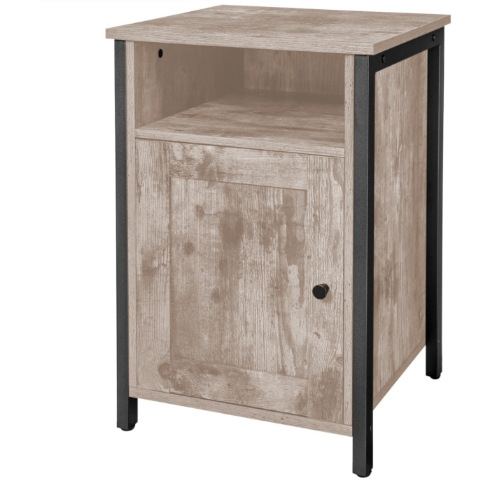 Hoppa! Nachtkastje met open vak, plankje en deurtje – Greige – van houten spaanplaat en staal - 41 x 41 x 61 cm (B x D x H)