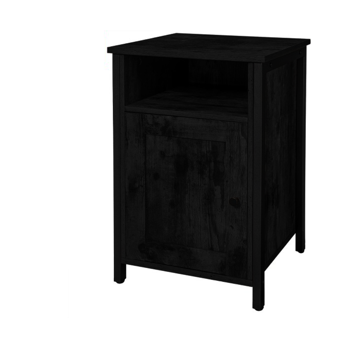 Hoppa! Nachtkastje met open vak, plankje en deurtje – Zwart – van houten spaanplaat en staal - 41 x 41 x 61 cm (B x D x H)
