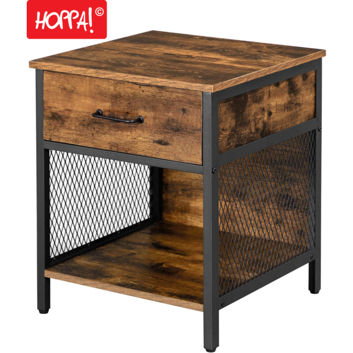 Hoppa! Nachtkastje | 46 x 46 x 56 cm | Bruin/Zwart | Spaanplaat/Staal