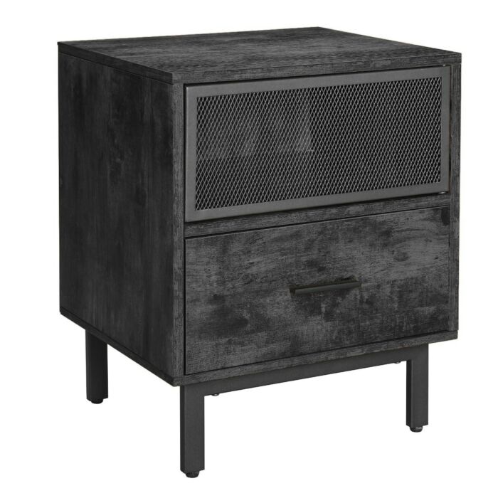 Hoppa! Nachtkastje Industrieel | Zwart | Spaanplaat/Staal | 45 x 40 x 55 cm (B x D x H)