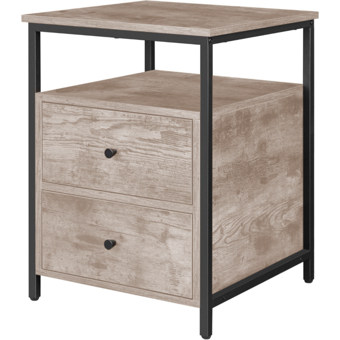 Hoppa! Nachtkastje | Greige | 2 Laden en Open Compartiment | 46 x 46 x 61 cm (B x D x H)