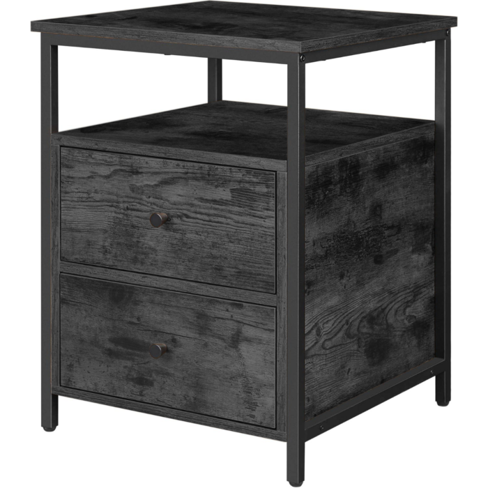 Hoppa! Nachtkastje | Zwart | 2 Laden en Open Compartiment | 46 x 46 x 61 cm (B x D x H)
