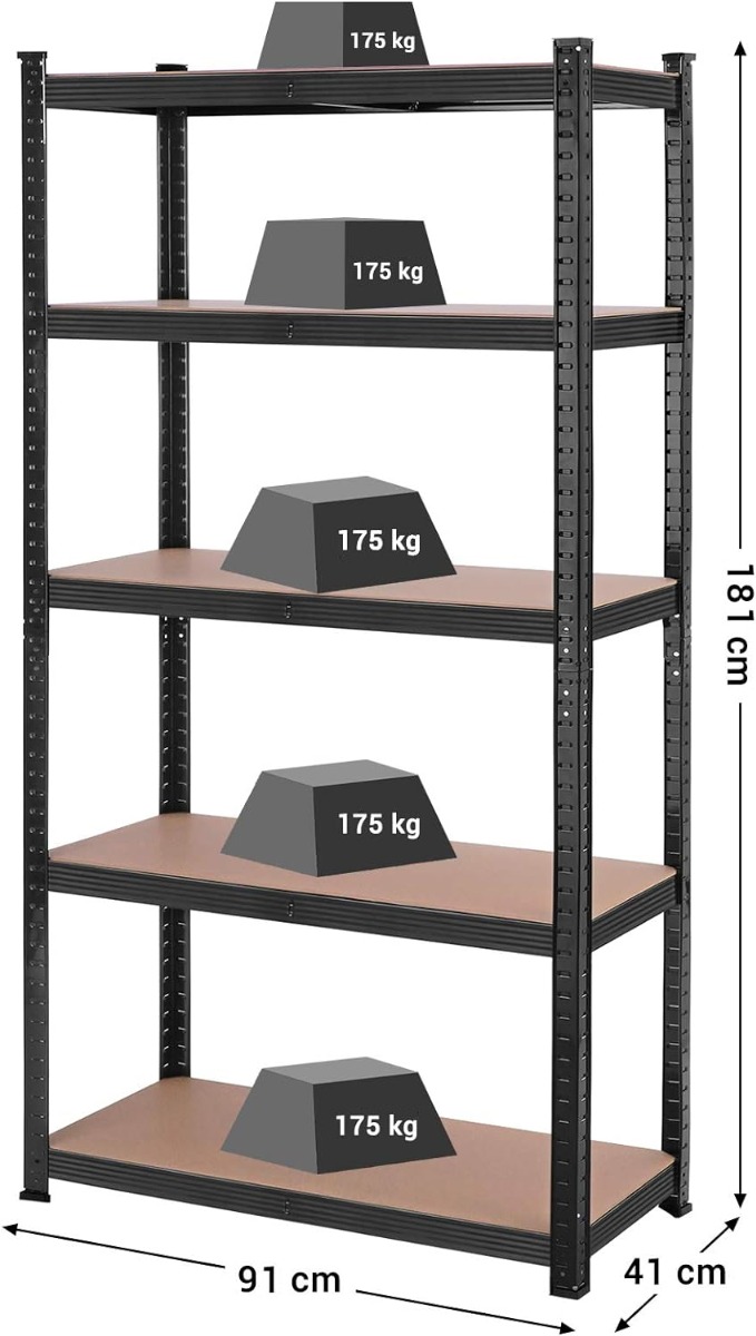 - Belastbaar tot 875 kg (175 kg per plank) - Verstevigd stalen frame met extra dwarsbalken - In hoogte verstelbare schappen - Eenvoudige montage - Geschikt voor garage, werkplaats, cellar, en winkel